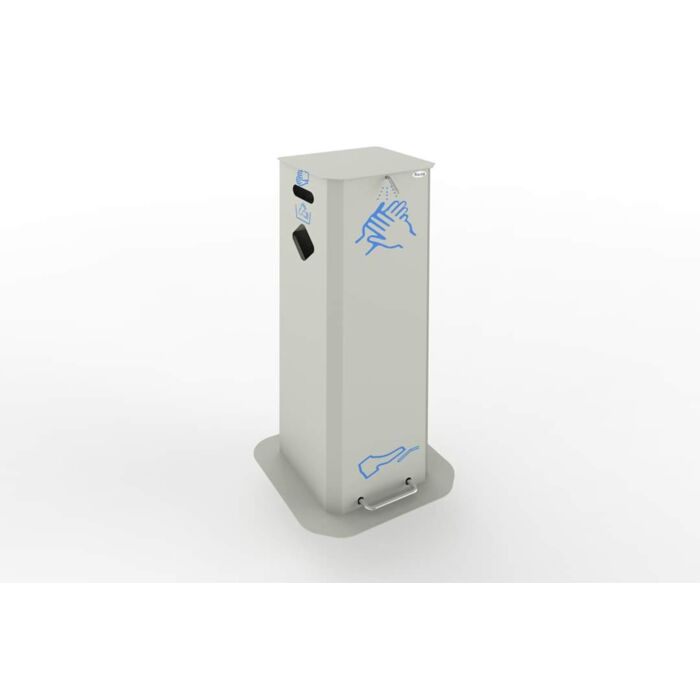 Corona preventiemiddel is ideaal voor gebruik bij de entree van een horecagelegenheid, werkplaats, winkel, kantoor, zorginstelling of openbare ruimte om de hygiëne te waarborgen. Met voetpedaal voor touchless bediening. De desinfectiezuil is van verzinkt materiaal en voorzien van polyester coating, dus deze zuil kan ook buiten geplaatst worden.