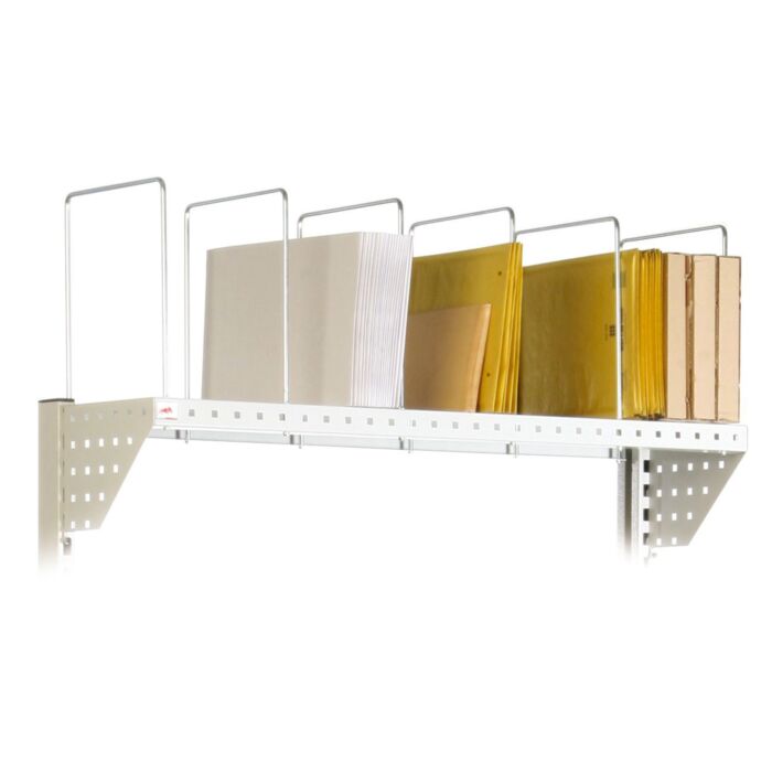 Kartonopslag plank met steunen aan de zijkanten en 6 scheidingsbeugels. Producent: Protaurus, merk: Taurotec. Voor kartonopslag, plank met steunen aan de zijkanten en 6 scheidingsbeugels. Alleen te bestellen in combinatie met pakstation