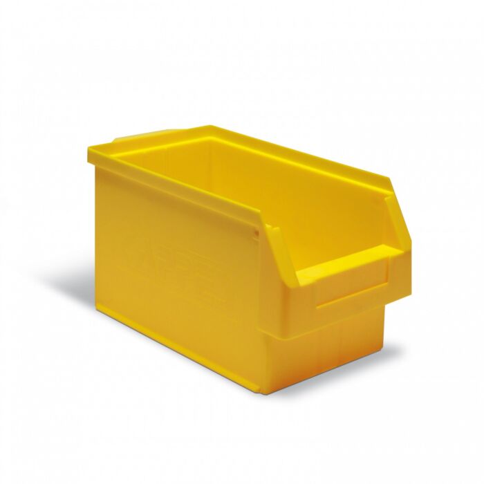 De bodem van deze magazijnbak is ook geschikt voor gebruik op rollerbanen en transportbanden. De binnenwanden van de zichtbak zijn glad uitgevoerd waardoor ze makkelijk te reinigen zijn. De achterzijde van de zichtbak is voorzien van een stevige 20 mm komgreep. Leverbaar in drie kleuren: geel 505-1029, rood 505-1028 of blauw 505-1027. Lengte 350 mm., breedte 200 mm en hoogte 200 mm. Materiaal Polyethyleen/polyetheen. Geschikt voor levensmiddelen. Voorraadbak, milieuvriendelijk, volledig recyclebaar, onbreekbaar en vormvast. Temperatuurbestendig van -40°C tot +60°C. Compatibel met de meest gangbare en toonaangevende voorraadbakken van de markt. Hoog belastbaar en nauwkeurig passend stapelbaar. Geschikt voor een rollenbaan door de gladde onderkant. Ergonomische handgrepen op voor- en achterkant.